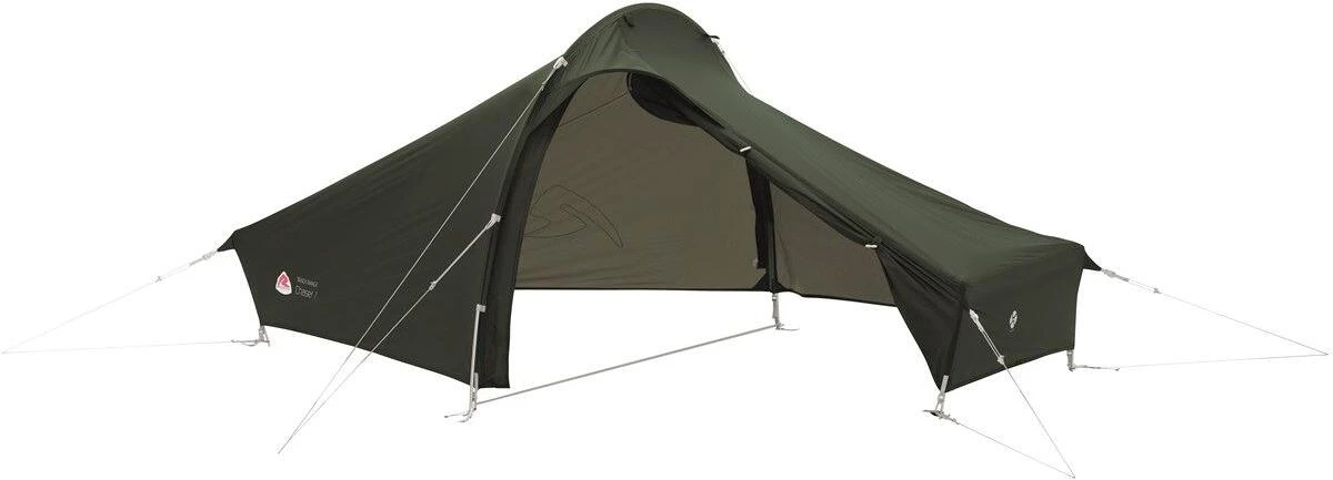 Das Ein-Personen-Zelt Robens Chaser 1 bedient sich des vielseitigen FlexPitch-Systems mit Ringaufhängung im Inneren. Dadurch ergeben sich je nach Wetter verschiedene Optionen, das Über- und/oder Innenzelt aufzustellen und in warmen Nächten einen teils oder komplett geschützten, insektenfreien Ausblick in den Himmel zu schaffen. Das Spannseil des Innenzelts lässt sich mit dem Überzelt verbinden, um es in Form zu halten, wenn es allein genutzt wird, um Gewicht einzusparen. Zu den äußeren Belüftungsoptionen gehören niedrige Lüftungsöffnungen, eine Apex-Türlüftung und ein Zweiwege-Reißverschluss.