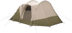 Die Kuppel Cobra Stone 5 bietet Platz für fünf Personen, erlaubt aufrechtes Stehen und verfügt für mehr Vielseitigkeit über zwei Vorräume. Die Platzierung der Lüftungsschlitze sorgt für einen verbesserten Luftstrom, wenn die Türen geschlossen sind. Entferne bei schönem Wetter die Vorraumwände für den freistehenden Modus, der das Innenzelt enthüllt. Es bietet eine regendichte Fronttür mit Zwei-Wege-Reißverschluss und dreilagigem Fenster, das aus einem Netzpaneel mit PVC-Rückseite und einem Vorhang für Privatsphäre besteht. Die einfache U-Tür hinten hat ebenfalls einen Zwei-Wege-Reißverschluss. Dunkle Wände reduzieren das Licht und sorgen für mehr Schlafkomfort.