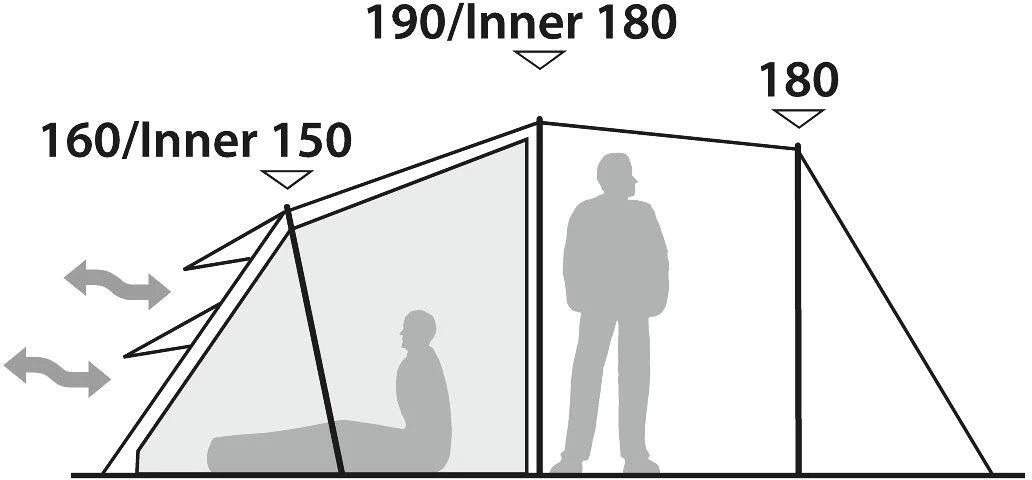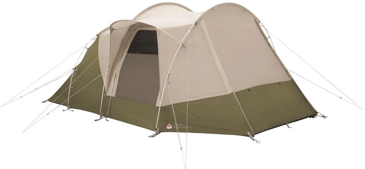 Das Double Dreamer 5 beherbergt bis zu fünf Personen und bietet abenteuerlustigen Familien das ideale Basislager dank voller Stehhöhe und Allwetterschutz. Zu den Ausstattungsmerkmalen gehören die beiden hinteren und die niedrig angeordneten Lüftungsöffnungen zum Regulieren der Luftzufuhr. Unterstützt wird dies durch die Netzeinsätze hinter den Außentüren, die beim Lüften Insekten fernhalten. Das Fenster mit Netzeinsatz ist mit einem wasserdichten Vorhang versehen und das obere PVC-Panel hilft dabei, Privatsphäre, Belüftung und Licht perfekt abzustimmen. Der regengeschützte Seiteneingang bietet einen trockenen Zugang zum Zelt.