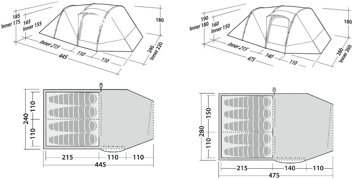 - Netztaschen in den Innenzelten dienen zur sicheren und griffbereiten Aufbewahrung kleinerer Gegenstände