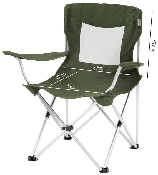 Der praktische wie auch bequeme Faltstuhl mit Polyeter Bezug und stabiles Aluminiumgestell ist ein Tip für Budget Camper.