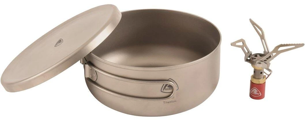 Das Fire Midge Ti. Kochset bestehnt aus Titanium Topf, Deckel und Brenner ist besonders leicht und kompakt.