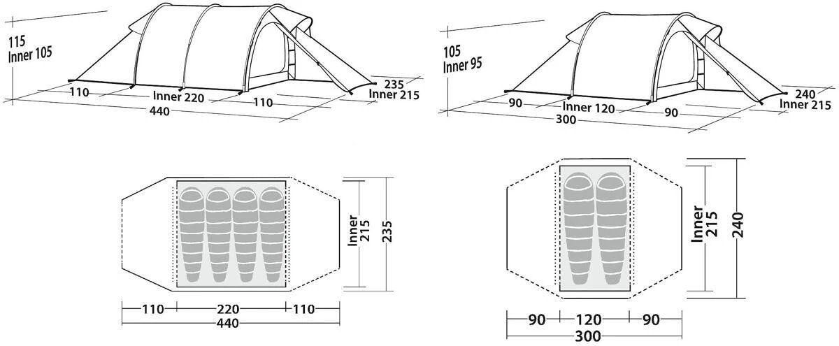 - Boden Innenzelt: Polyester-Taffeta 210T, 75D, 10.000 mm Wassersäule, 100% Polyester