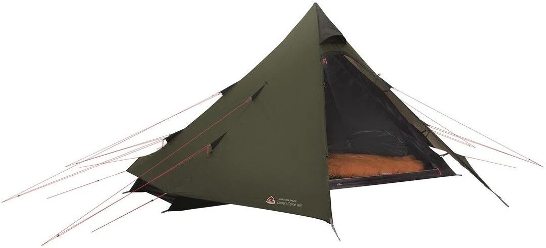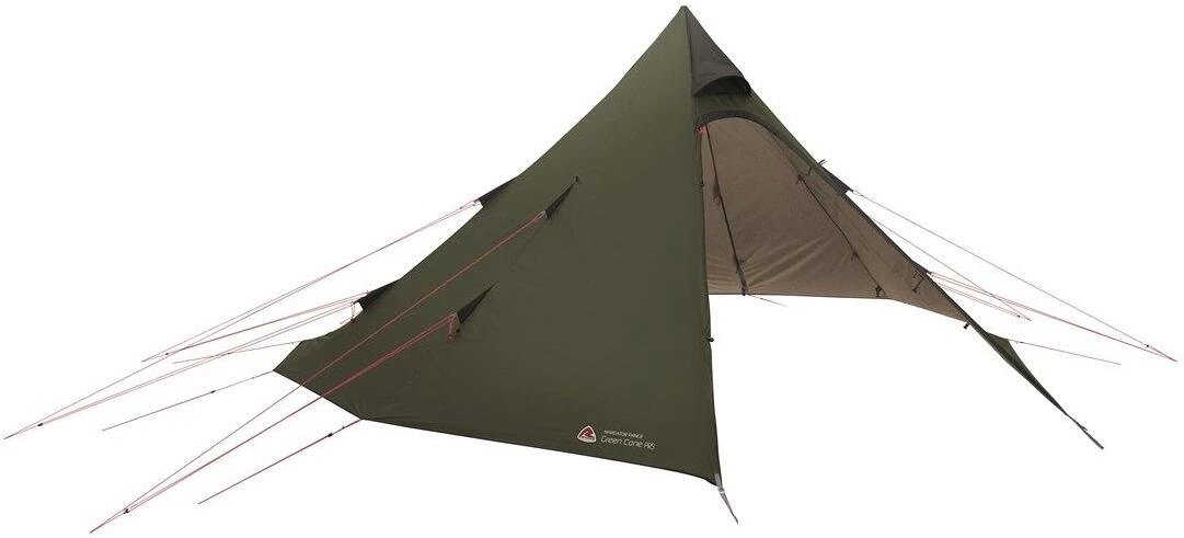 Das vielseitige Tipi Green Cone PRS aus Polyester überzeugt mit großzügiger Stehhöhe, einem großen Vorraum und Platz für vier Personen im Inneren. Die versetzte Mittelstange ermöglicht einen einfachen Zugang und hebt das Außenzelt ein wenig vom Boden, wodurch ein Spalt entsteht, der für einen besseren Luftstrom sorgt. Um Gewicht zu sparen, kann das Innenzelt entfernt und die Teleskop-Mittelstange verstellt werden, damit das Außenzelt direkt auf dem Boden steht – das perfekte Biwak-Zelt. In das dunkle Innenzelt sind kleine Eckstangen eingenäht, wodurch eine Wand entsteht, die zusätzlichen nutzbaren Raum schafft.