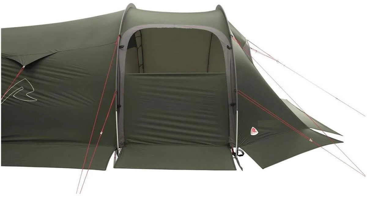 Das Tunnelzelt Robens Nordic Lynx wurde für winterliche Bedingungen entwickelt. s ist dank der großen Stangenkanäle und langen Heringsschlaufen mit zusätzlichen Spannleinen und Schneeblenden für mehr Sicherheit leicht aufzustellen. Die langen Reißverschlussanhänger sind auch mit Handschuhen leicht zu benutzen. Eine Seitentür mit Doppelreißverschluss für flexible Belüftung bietet Zugang zum großen erweiterten Vorraum. Das neue umfassende Belüftungssystem sorgt vorne und hinten vor Schutz vor Schnee/Insekten und lässt sich bei jedem Wetter praktisch von innen regulieren.