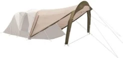 Die 5 m lange Outback-Windschutzplane aus Polycotton bietet Privatsphäre und seitlichen Schutz vor Wind. Sie ist 140 cm hoch und verfügt über einen geteilten Stangenkanal, der es ermöglicht, die Unterseite der Plane aufzurollen, wodurch bei Bedarf eine 27 cm hohe Lücke entsteht, falls ein besserer Luftstrom am Boden gewünscht wird oder man sich den Untergrundbedingungen anpassen muss. Durch Entfernen des unteren 30 cm langen Stangenteils verringert sich die Höhe des Windschutzes, falls die Umgebung dies nötig macht oder man beim Sitzen eine bessere Aussicht möchte.