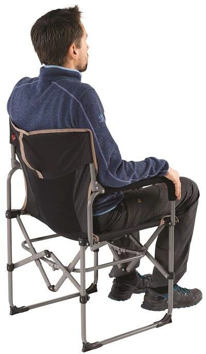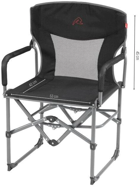 Bequemer Faltstuhl mit ungewöhnlich kleinem Packmaß für diese Bauart (Regiestuhl). Dies wird durch den Faltmechanismus erreicht, welcher die Höhe des Stuhls beim Falten halbiert. Mit Netzeinsätzen für hohen Komfort und Durchlüftung sowie praktischem Tragegriff.