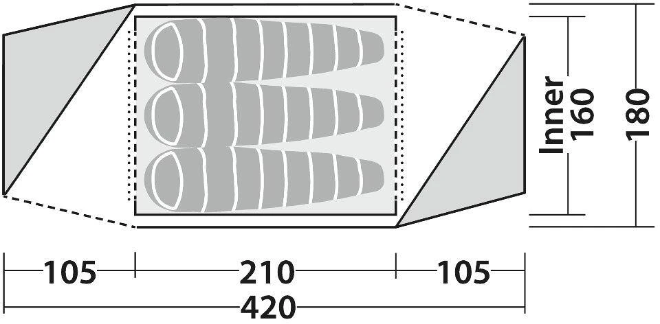 - Boden Innenzelt: Polyester-Taffeta 185T, 75D, 7.000 mm Wassersäule, 100% Polyester